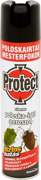A telelési céllal a lakásba bejövő poloskák elleni hatékony védekezés elengedhetetlen része a mechanikai védekezési módszerek alkalmazása, vagyis a nyílászárók hálózása, valamint az épület falain és tetőszerkezetén fellelhető - technológiai vagy anyaghibából eredő - folytonossági hiányok kijavítása! A Protect® címeres poloska-irtó aeroszol alkalmazása ezen óvintézkedések megtétele mellett, kiegészítő jelleggel javasolt. A készítmény repülő rovarok (pl. legyek, szúnyogok) irtására, a légtérbe porlasztva nem használható!