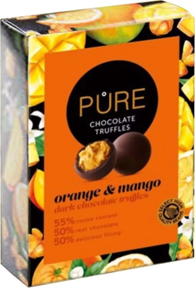 Pure 148G Étcsokoládé Trüffel Golyók Narancsos-Mangós Krémmel Töltve