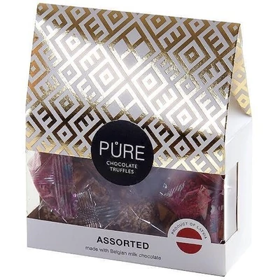 A Pure 96 g-os tejcsokoládé válogatás négyféle ízletes krémmel töltve. Finom tejcsokoládé borítás és krémes belső kombinációja minden csokoládé rajongó számára élvezetet nyújt.