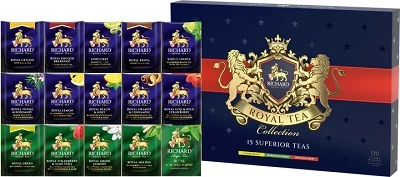A Richard Royal Tea Collection 224,8 g válogatás különböző fekete, zöld és gyümölcsteákból, ízletes gyümölcs- és virágdarabokkal. Elegáns csomagolása ajándéknak is kiváló, emellett minden teaélményt egy helyen kínál a mindennapi fogyasztáshoz.