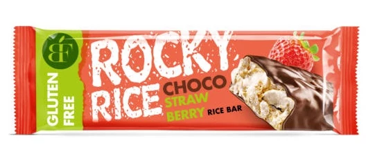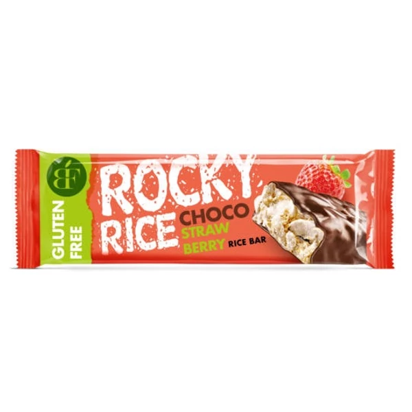 puffasztott barna rizs, cukor, kakaómassza,kakaóvaj, sovány tejpor, emulgeálószer (szójalecitin E322, PGPR E476), eperpor 0,3% és aromák. Csokoládé bevonat min. 47% kakaót tartalmaz.