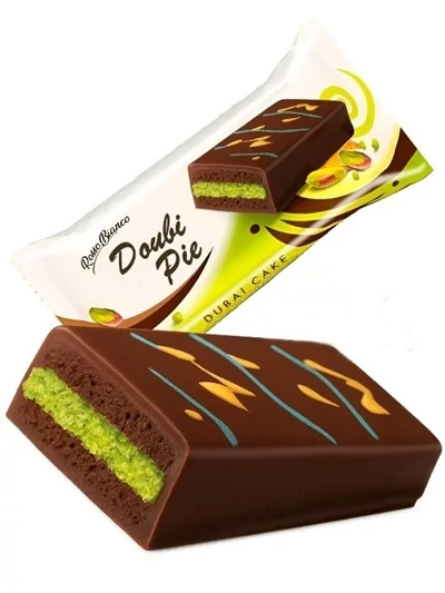 Prémium minőségű közel-keleti ihletésű édesség, amely gazdag pisztáciás krémmel töltött, ropogós kadayif tésztás kakaós piskótát rejt. Csokoládéba vont.
