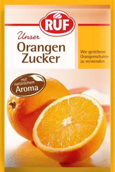A Ruf 30 g Narancsos Cukor aromás, finom cukor, amely természetes narancs ízzel gazdagítja süteményeket, édességeket és italokat. Apró kristályai könnyen adagolhatók, frissítő, citrusos ízt biztosít minden felhasználáskor.