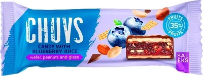 A Saleks Chuvs Nápolyi szelet Áfonyával és Földimogyoróval (30 g) több rétegnyi vékony ostyalap között gazdag áfonyaízű krém és ropogós földimogyoró-darabok harmonikus párosa – ideális gyors, ízletes nasiként.