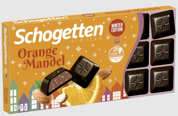 Gazdag, karakteres étcsokoládé, amelyet a citrusos narancshéj íze és a ropogós pirított manduladarabkák tesznek izgalmassá. Allergén információ: Tartalmaz mandulát és szóját. Nyomokban előfordulhatnak egyéb diófélék, földimogyoró, gluténtartalmú gabonák és tejtermékek. Tárold száraz, hűvös helyen, közvetlen napfénytől védve. Schogetten Étcsokoládé Narancs & Mandula (100 g)