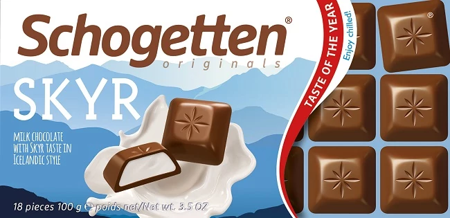 A Skyr finom Schogetten termékével ízletes ízkombinációt tapasztalhat meg édes csokoládédarabok formájában. A kis finomságok kiváló minőségű tejcsokoládéből készülnek, és páratlanul finom krémsajtkrémmel vannak töltve, amely izlandi módon elcsábítja az egyedi Skyr ízét.