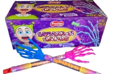Látványos, csontváz kéz formájú műanyag csomagolásban található, apró, színes cukordrazsé. Tökéletes választás Halloween bulikra, ajándékként vagy dekorációként. A kiszerelés könnyen kezelhető, gyermekek számára is izgalmas édesség.