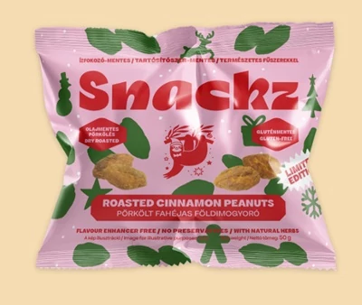 Snackz 50 g pörkölt fahéjas földimogyoró — ropogós, enyhén édes pörkölt földimogyoró fahéjjal és tengeri sóval fűszerezve, különleges ízvilággal.
