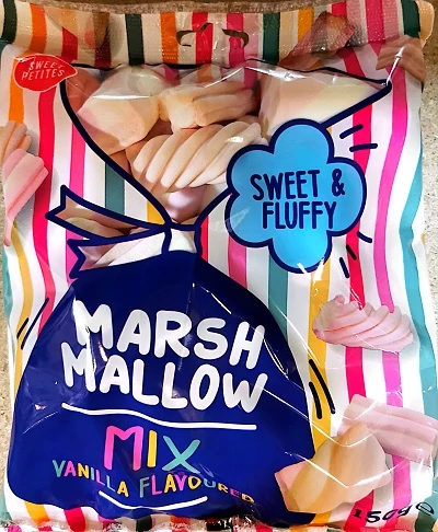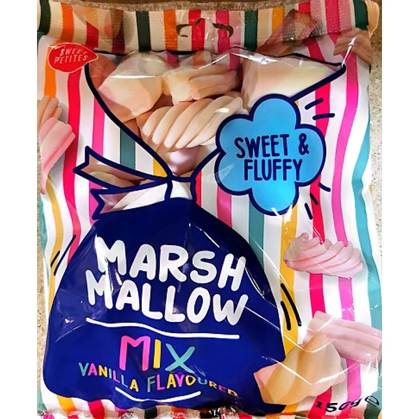 Ízletes marshmallow keverék változatos színekkel és formákkal – puha, édes snack filmhez, bulihoz vagy délutáni nasihoz.