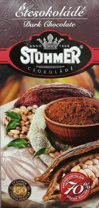 Kakaómassza, Cukor, Kakaóvaj, Emulgeálószer: szójalecitin, Aroma: természetes vanília, Kakaó szárazanyag-tartalom: legalább 70%.