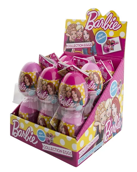 - A meglepetés tojás 10 g zsák gyümölcsízű cukorkát és egy kis Barbie témájú meglepetés ajándékot tartalmaz