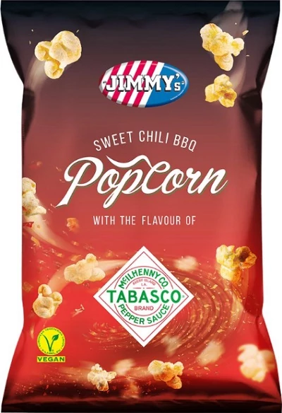 A Tabasco Sweet Chili BBQ Popcorn izgalmas fűszerkombinációt kínál: a barbecue édességét, a chili csípősségét és a Tabasco márka karakteres aromáját egy csomagba zárva – kiváló választás filmnézéshez vagy bulis nassoláshoz.