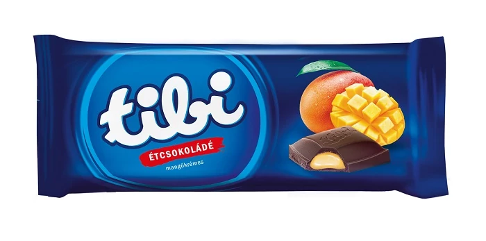 Mangókrémmel (min. 35%) töltött étcsokoládé.