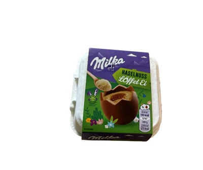 Négy darabos csomag Milka Löffel-Ei étcsokoládé tojás mogyoró töltelékkel. Lágy csokoládé és krémes, ropogós mogyorótöltelék harmonikus kombinációja, ideális nassolnivalóként vagy ajándékként a karácsonyi időszakban.