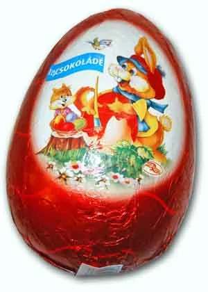 Nagy méretű húsvéti tojás piros színű fóliába csomagolva. Klasszikus, üreges csokoládéfigura, amely kiváló meglepetés locsolóknak vagy ünnepi dekoráció részeként. A 200 g-os súly garantálja, hogy nemcsak látványos, de tartalmas ajándék is legyen.