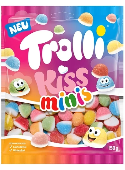 A Trolli Kiss Minis egy mókás formájú, rágós állagú gumicukorka válogatás.