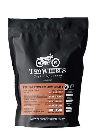100 % Arabica, Brazíliából származó prémium szemes kávé, gondosan pörkölve a kiegyensúlyozott, lágy csokoládés és diós aromák érdekében. Ideális választás klasszikus, bársonyosan sima kávéélményhez. A táblázat a száraz pörkölt szemekre vonatkozik, nem az elkészült italra. Légmentesen záródó edényben, hűvös és száraz helyen, napfénytől védve. Felbontás után ajánlott 3–4 héten belül elfogyasztani az ízélmény fenntartása érdekében.Two Wheels Brazil Arabica Pörkölt Szemes Kávé 250 g