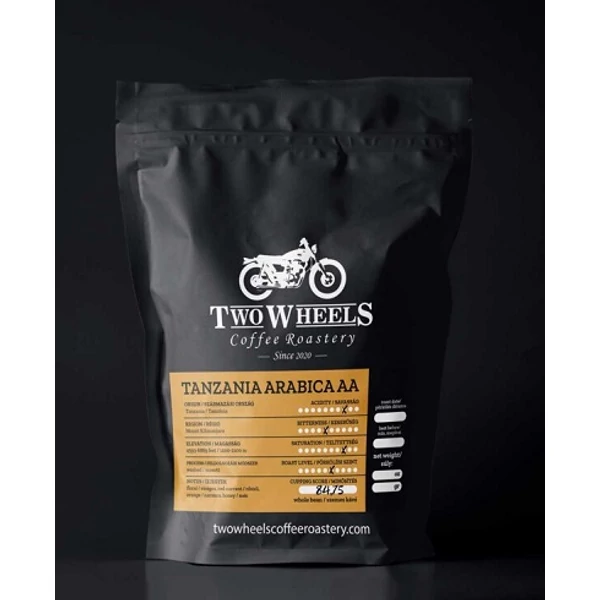 100 % Arabica, Tanzániai eredetű, kézzel válogatott és gondosan pörkölt kávé. A Tanzánia – különösen Kilimanjaro és Arusha régiók – magaslati termesztése fényes savasságot, közepes testességet és élénk gyümölcsös-fűszeres karaktert kölcsönöz a kávénak :contentReference[oaicite:1]{index=1}. Figyelem: a táblázat a száraz pörkölt szemekre vonatkozik, nem a kész italfogyasztásra. Tartsa légmentesen záródó edényben, hűvös és száraz helyen (15–20 °C), közvetlen napfénytől védve. Felbontás után javasolt 3–4 héten belül felhasználni.Two Wheels Tanzania Arabica Pörkölt Szemes Kávé 250 g