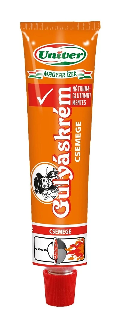 Az Univer csemege gulyáskrém 70 g-os kiszerelése ízes, fűszeres alapkrém, amely gyorsan és egyszerűen varázsol autentikus magyar gulyásleves- vagy pörköltalapot otthonába. Gazdag paprika- és hagymaaromájával, enyhén csípős, fűszeres ízvilágával tökéletes alap szószokhoz, ragukhoz és pörköltekhez.