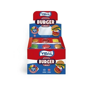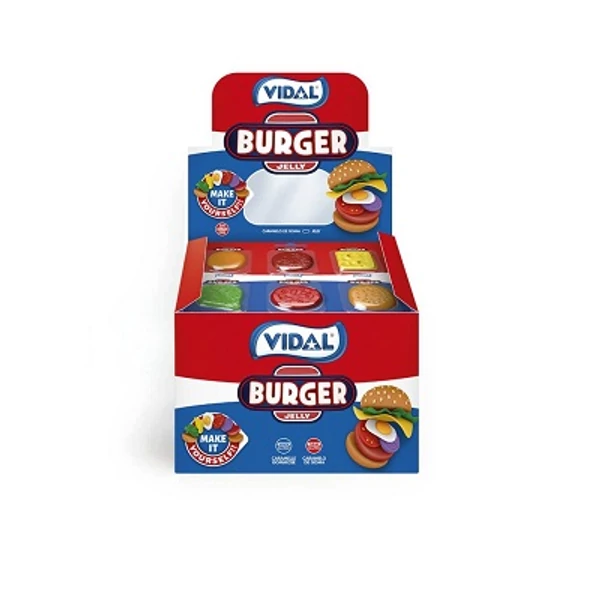 A Vidal BurgerJelly (66 g, 11120) játékos hamburger formájú gumicukor – puha, rugalmas állag és vegyes gyümölcsös aromák minden egyes darabban, igazán mókás nassolnivaló gyerekeknek és nosztalgia-rajongóknak.