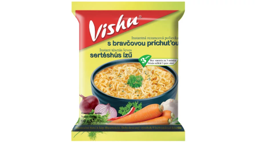 Tészta (87,2%): búzaliszt, pálmaolaj, só, cukor, ízfokozó (E621), emulgeálószer (E451, E452), térfogatnövelő (E500, E501); Fűszerkeverék (12,8%): só, cukor, szójabab olaj, ízfokozó (E621), szárított zöldség (0,6%) (hagyma, sárgarépa, fokhagyma), fűszerek (őrölt bors, csilipaprikapor (0,1%)), mesterséges sertéshús aroma (0,09%), ízfokozó (E627, E631), színezőanyag (E150d)