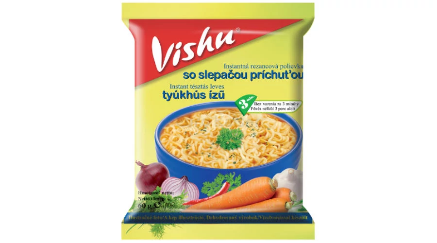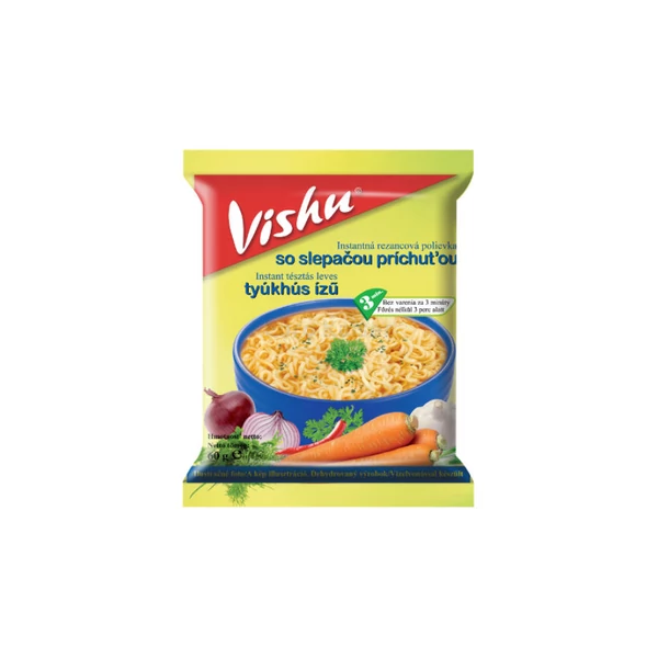 Tészta (87,2%): búzaliszt, pálmaolaj, só, cukor, ízfokozó (E621), emulgeálószer (E451, E452), térfogatnövelő (E500, E501), Fűszerkeverék (12,8%): só, cukor, szójabab olaj, ízfokozó (E621), szárított zöldség (0,6%) (hagyma, sárgarépa, fokhagyma), fűszerek (őrölt bors, csilipaprikapor (0,1%)), mesterséges tyúkhús aroma (0,09%), ízfokozó (E627, E631), színezőanyag (E150d)