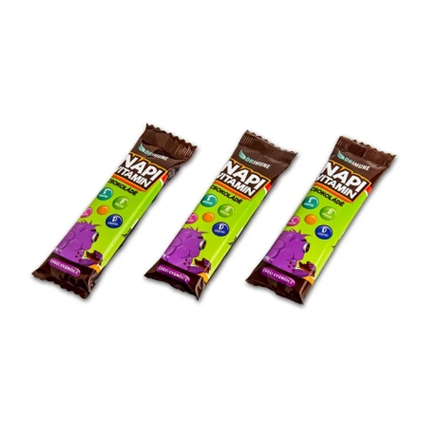 A D-vitamin: Napfényvitamin a vitamin csoki szeletben: 1 szeletben a WHO által ajánlott napi mennyiség! A D-vitamin a a C-vitamin mellet az másik elengedhetetlenül szükséges vitamin, nagyon sok élettani folyamat katalizátora. Az európai lakosság 70%-a D-vitamin hiányos. Jelenlegi ismereteink szerint a D-vitamint általános D-vitamin pótlással NEM LEHET TÚLADAGOLNI.