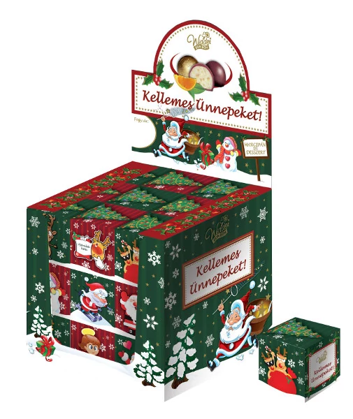 A Widder Dobozka Adventi (25 g) ünnepi csomagolású kis gumidobozka – vegyes gyümölcsös ízek (eper, citrom, narancs, alma) és puha, rugalmas állag minden egyes darabban, adventi hangulatot idéző grafikával.