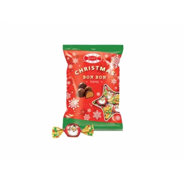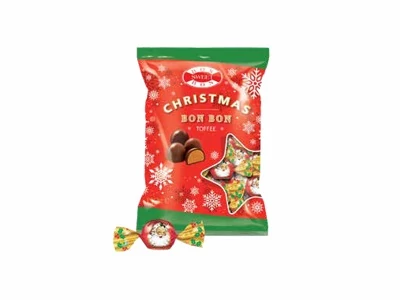 Finom, lágy toffee bonbonok válogatása, 130 grammos kiszerelésben. Kellemes karácsonyi ízekkel.