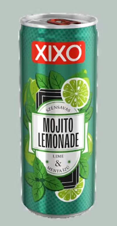 A Xixo Mojito Lemonade frissítő, szénsavas üdítőital, amely a citromos limonádé üde savanykás ízét ötvözi a mojitóra jellemző lime-os, mentás aromavilággal. Praktikus, 250 ml-es alumínium dobozos kiszerelése ideális választás útközbeni fogyasztásra. A termék DRS jelöléssel ellátott, visszaváltható csomagolásban kerül forgalomba.