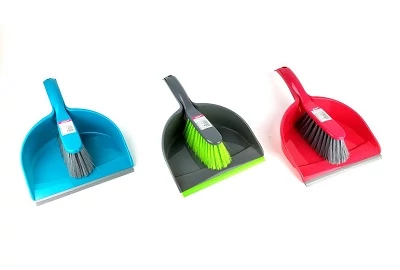 Műanyag lapát és seprűnyél, szintetikus sörtékkel ellátott seprő.