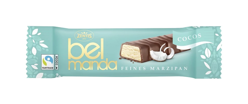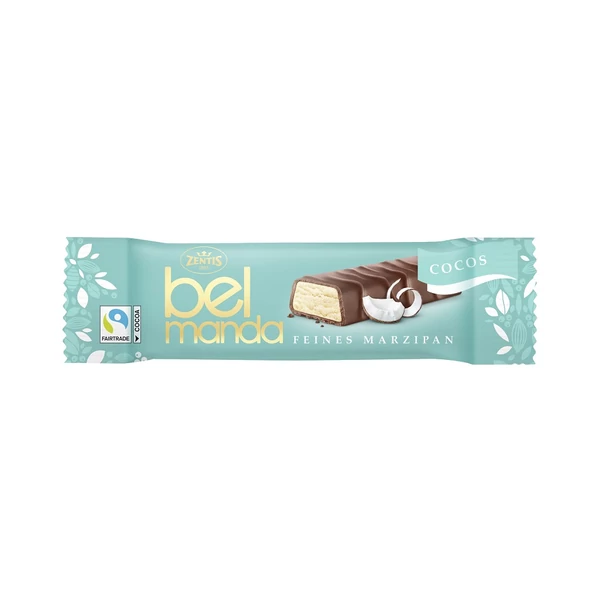 Kézzel formált marcipánmassza és ízesített kókuszkrém réteg finom tejcsokoládé bevonatban. A Zentis Belmanda Cocos egzotikus aromáival és lágy textúrájával kényeztet minden falatban.