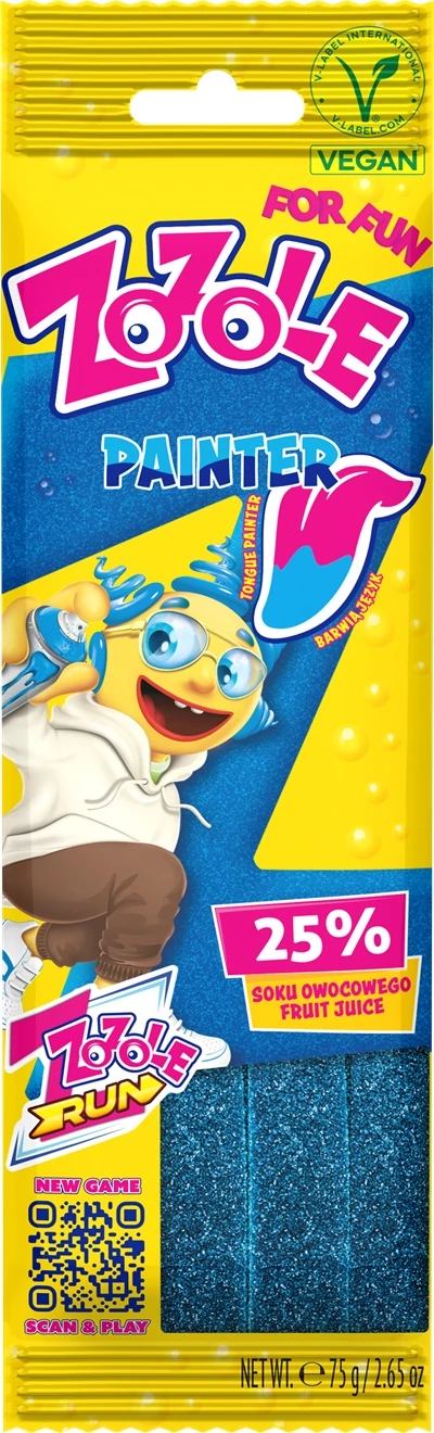 Kék színű, málna ízű gumicukor, amely szórakoztató nyelvfestő hatással rendelkezik. Savanykás ízvilág, praktikus kiszerelés.